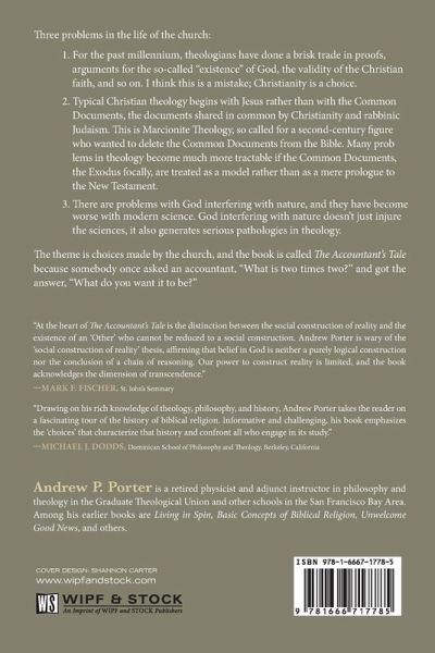 Three problems in the life of the church: (1) For the past millennium, theologians have done a brisk trade in proofs, arguments for the so-called ''existence'' of God, the validity of the Christian faith, and so on. I think this is a mistake; Christianity is a choice. (2) Typical Christian theology begins with Jesus rather than with the Common Documents, the documents shared in common by Christianity and rabbinic Judaism. This is Marcionite Theology, so called for a second-century figure who wanted to delete the Common Documents from the Bible. Many problems in theology become much more tractable if the Common Documents, the Exodus focally, are treated as a model rather than as a mere prologue to the New Testament. (3) There are problems with God interfering with nature, and they have become worse with modern science. God interfering with nature doesn't just injure the sciences, it also generates serious pathologies in theology. The theme is choices made by the church, and the book is called The Accountant's Tale because somebody once asked an accountant, ''What is two times two?'' and got the answer, ''What do you want it to be?''