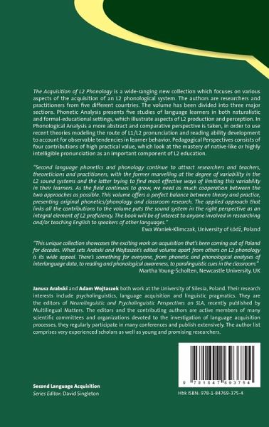This wide-ranging new collection explores various aspects of the acquisition of an L2 phonological system. It covers L2 speech production and perception, theoretical conceptualisations of L2 phonology acquisition, and the importance of the mastery of highly intelligible pronunciation as an important component of L2 education.