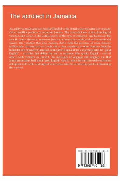 An ability to speak Jamaican Standard English is the stated requirement for any managerial or frontline position in corporate Jamaica. This research looks at the phonological variation that occurs in the formal speech of this type of employee, and focuses on the specific cohort chosen to represent Jamaica in interactions with local and international clients. The variation that does emerge, shows both the presence of some features traditionally characterized as Creole and a clear avoidance of other features found in basilectal and mesolectal Jamaican. Some phonological items are prerequisites for ¿good English¿ - variables that define the user as someone who speaks English - even if other Creole variants are present. The ideologies of language and language use that Jamaican speakers hold about ¿good English¿ clearly reflect the centuries-old coexistence of English and Creole, and suggest local norms must be our starting point for discussing the acrolect.