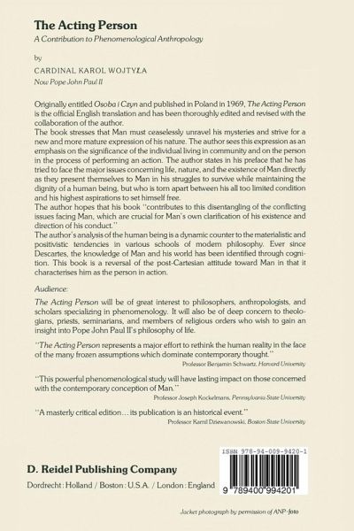 Audience: The Acting Person will be of great interest to philosophers, anthropologists, and scholars specializing in phenomenology. It will also be of deep concern to theologians, priests, seminarians, and members of religious orders who wish to gain an insight into Pope John Paul II's philosophy of life.