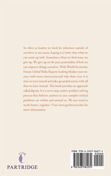 So often as leaders we look for solutions outside of ourselves or our teams, hoping it is better than what we can come up with. Sometimes when we find none, we give up. We give up on the pure potentiality of how we can improve things ourselves. With World Economic Forum Global Risks Reports looking bleaker year-on-year, with more interconnected risks than ever, it is time to turn inward and take grounded action with all that we have instead. This book provides an approach called dignity. It is a seven step creative problem-solving process that believes answers to our complex wicked problems are within and around us. We just need to work better, together. Visit www.goalweaver.biz for more information.