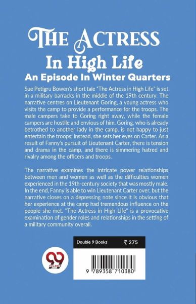 Sue Petigru Bowen's short tale "The Actress in High Life" is set in a military barracks in the middle of the 19th century. The narrative centres on Lieutenant Goring, a young actress who visits the camp to provide a performance for the troops. The male campers take to Goring right away, while the female campers are hostile and envious of him. Goring, who is already betrothed to another lady in the camp, is not happy to just entertain the troops; instead, she sets her eyes on Carter. As a result of Fanny's pursuit of Lieutenant Carter, there is tension and drama in the camp, and there is…mehr