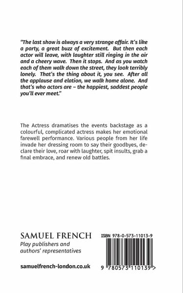 The Actress dramatises the events backstage as a colourful, complicated actress makes her emotional farewell performance. Various people from her life invade her dressing room to say their goodbyes, declare their love, roar with laughter, spit insults, grab a final embrace, and renew old battles.