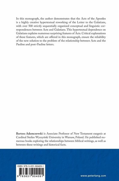 In this monograph, the author demonstrates that the Acts of the Apostles is a highly creative hypertextual reworking of the Letter to the Galatians, with over 500 strictly sequentially organized conceptual and linguistic correspondences between Acts and Galatians. This hypertextual dependence on Galatians explains numerous surprising features of Acts. Critical explanations of these features, which are offered in this monograph, ensure the reliability of the new solution to the problem of the relationship between Acts and the Pauline and post-Pauline letters.