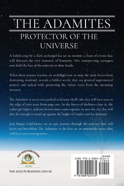 A failed coup by a dark archangel has set in motion a chain of events that will threaten the very existence of humanity. Five unsuspecting teenagers now hold the fate of the universe in their hands. As the forces of darkness close in, the stakes get higher, and our heroes must come together to save the day. But will they be enough to stand up against the might of Zophra and his minions?Join Bimpe Gold-Idowu and Richard O. Idowu on an epic journey through the universe that will leave you breathless. The Adamites is the first in an unmissable series that will leave you wanting more.