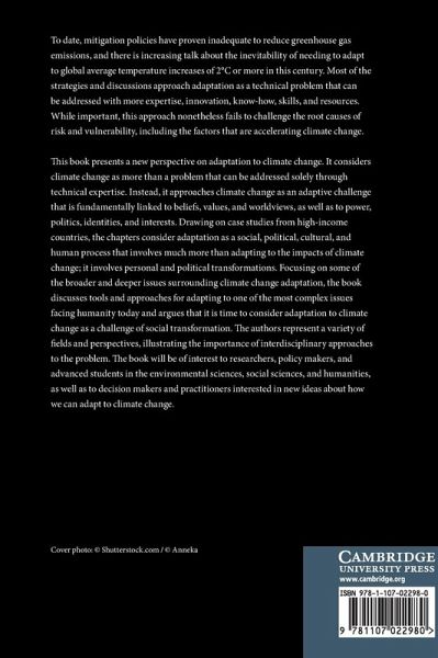 This book presents a new perspective on adaptation to climate change. It considers climate change as more than a problem that can be addressed solely through technical expertise. Instead, it approaches climate change as an adaptive challenge that is fundamentally linked to beliefs, values and worldviews, as well as to power, politics, identities and interests. Drawing on case studies from high-income countries, the book argues that it is time to consider adaptation to climate change as a challenge of social, personal and political transformations. The authors represent a variety of fields and perspectives, illustrating the importance of interdisciplinary approaches to the problem. The book will be of interest to researchers, policymakers and advanced students in the environmental sciences, social sciences and humanities, as well as to decision makers and practitioners interested in new ideas about adapting to climate change.