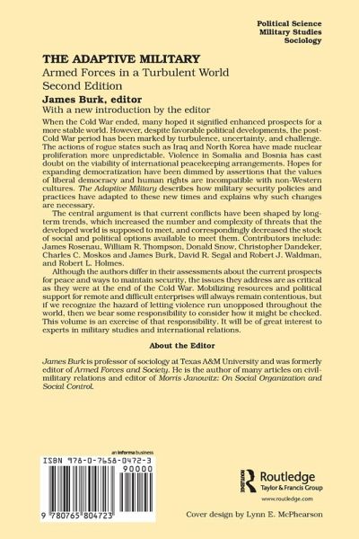 When the cold war ended, many hoped it signified enhanced prospects for a more stable world. However, despite favorable political developments, the post-cold war period has been marked by turbulence, uncertainty, and challenge. The actions of rogue states such as Iraq and North Korea have made nuclear proliferation more unpredictable. Violence in Somalia and Bosnia has cast doubt on the viability of international peacekeeping arrangements. Hopes for expanding democratization have been dimmed by assertions that the values of liberal democracy and human rights are incompatible with non-Western cultures. The Adaptive Military describes how military security policies and practices have adapted to these new times and explains why such changes are necessary. The central argument is that current conflicts have been shaped by long-term trends, which increased the number and complexity of threats that the developed world is supposed to meet, and correspondingly decreased the stock of social and political options available to meet them. Although the authors differ in their assessments about the current prospects for peace and ways to maintain security, the issues they address are as critical as they were at the end of the Cold War. Mobilizing resources and political support for remote and difficult enterprises will always remain contentious, but if we recognize the hazard of letting violence run unopposed throughout the world, then we bear some responsibility to consider how it might be checked. This volume is an exercise of that responsibility. It will be of great interest to experts in military studies and international relations.