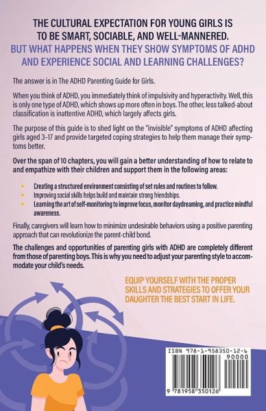 The cultural expectation for young girls is to be smart, sociable, and well-mannered. But what happens when they show symptoms of ADHD and experience social and learning challenges? The answer is in The ADHD Parenting Guide for Girls. When you think of ADHD, you immediately think of impulsivity and hyperactivity. Well, this is only one type of ADHD, which shows up more often in boys. The other, less talked-about classification is inattentive ADHD, which largely affects girls. The purpose of this guide is to shed light on the "invisible" symptoms of ADHD affecting girls aged 3-17 and provide targeted coping strategies to help them manage their symptoms better. Over the span of 10 chapters, you will gain a better understanding of how to relate to and empathize with their children and support them in the following areas: ¿ Creating a structured environment consisting of set rules and routines to follow. ¿ Improving social skills helps build and maintain strong friendships. ¿ Learning the art of self-monitoring to improve focus, monitor daydreaming, and practice mindful awareness. Finally, caregivers will learn how to minimize undesirable behaviors using a positive parenting approach that can revolutionize the parent-child bond. The challenges and opportunities of parenting girls with ADHD are completely different from those of parenting boys. This is why you need to adjust your parenting style to accommodate your child's needs. Equip yourself with the proper skills and strategies to offer your daughter the best start in life.
