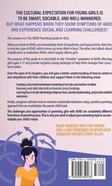The cultural expectation for young girls is to be smart, sociable, and well-mannered. But what happens when they show symptoms of ADHD and experience social and learning challenges? The answer is in The ADHD Parenting Guide for Girls. When you think of ADHD, you immediately think of impulsivity and hyperactivity. Well, this is only one type of ADHD, which shows up more often in boys. The other, less talked-about classification is inattentive ADHD, which largely affects girls. The purpose of this guide is to shed light on the "invisible" symptoms of ADHD affecting girls aged 3-17 and provide targeted coping strategies to help them manage their symptoms better. Over the span of 10 chapters, you will gain a better understanding of how to relate to and empathize with their children and support them in the following areas: ¿ Creating a structured environment consisting of set rules and routines to follow. ¿ Improving social skills helps build and maintain strong friendships. ¿ Learning the art of self-monitoring to improve focus, monitor daydreaming, and practice mindful awareness. Finally, caregivers will learn how to minimize undesirable behaviors using a positive parenting approach that can revolutionize the parent-child bond. The challenges and opportunities of parenting girls with ADHD are completely different from those of parenting boys. This is why you need to adjust your parenting style to accommodate your child's needs. Equip yourself with the proper skills and strategies to offer your daughter the best start in life.