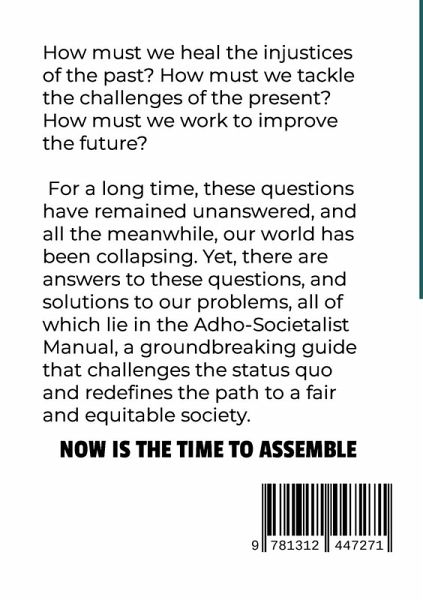 In this thought-provoking book, the "Adho-Societalist Manual," the complexities of this revolutionary ideology are explored, providing a comprehensive understanding of its principles and potential for creating a more just and inclusive society. Through insightful analysis and compelling arguments, this book delves into the foundations of Adho-Societalism, challenging the traditional dichotomies and proposing a new framework that transcends the limitations of existing ideologies. It presents a compelling vision of a society where cooperation triumphs over competition, equity prevails over inequality, and people are valued above profits. The "Adho-Societalist Manual" is not merely a theoretical exploration; it is a call to action. It inspires readers to question the status quo, challenge preconceived notions, and actively participate in shaping a future where the welfare of all individuals is at the forefront. This book is the revised version of the original "Adho-Societalist Manual," which was published in 2022. It contains expanded conclusions and introductions to each part of the book, an expanded epilogue, a new preface, and a glossary.