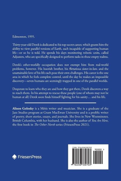 Alison Golosky is a Métis writer and musician. She is a graduate of the Jazz Studies program at Grant MacEwan University and is a prolific writer of poetry, short stories, essays, and journals. She lives in New Westminster, British Columbia, with her husband. She is also the author of You Are Here, the first book in The Other North series (FriesenPress 2021).
