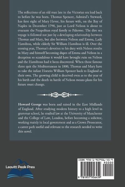 The reflections of an old man late in the Victorian era lead back to before he was born. Thomas Spencer, Admiral's Steward, has first sight of Mary Hever, his future wife, on the Bay of Naples in December 1798, just as Lord Nelson is about to evacuate the Neapolitan royal family to Palermo. The dire sea voyage is followed not just by a developing relationship between Thomas and Mary, but also between Nelson and Emma, Lady Hamilton, while elderly Sir William Hamilton is ill. Over the ensuing year, Thomas's devotion to his duty with Nelson results in Mary and himself becoming dupes of Emma and Nelson in a deception so scandalous it would have brought ruin on Nelson and the Hamiltons had it been discovered. When those famous three quit the Mediterranean in 1800, Thomas and Mary have to take the infant Horatio William Spencer back to England as their own. The growing child is deceived even as to the year of his birth and the death in battle of Nelson means plans for his future must change.