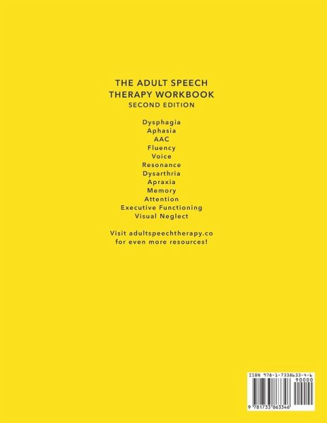 THE ADULT SPEECH THERAPY WORKBOOK: SECOND EDITION is your go-to resource for practical, evidence-based handouts and worksheets! *Newly updated in 2025 with fresh evidence and brand-new worksheets and activities! WHICH TOPICS ARE COVERED: Dysphagia, Aphasia, AAC, Fluency, Voice, Resonance, Dysarthria, Apraxia of Speech, Memory, Attention (NEW!), Executive Functioning (NEW!), & Visual Neglect WHAT'S INCLUDED IN THE WORKBOOK: Patient Handouts, Functional Worksheets & Activities, Treatment Guides, Word Lists, Phonemic Lists, Reading Material, Reference List, and much more. All evidence-based! COPYING & PRINTING: Copy pages directly or bring The Adult Speech Therapy Workbook to a printshop (OfficeMax, etc.) to spiral-bind the pages. Please see for the digital version if you prefer not to make physical copies. EFFECTIVE IN ALL ADULT SPEECH THERAPY SETTINGS. The Adult Speech Therapy Workbook is loved by adult speech therapy professionals around the world working in all settings: outpatient, acute care, inpatient rehab, home heath, skilled nursing facilities, telehealth, and transition planning from school to adult life. ABOUT THIS WORKBOOK: Adult Speech Therapy: Handouts, activities, worksheets, and treatment guides to help treat the most common diagnoses and disorders, including stroke, Parkinson's disease, dementia, voice disorders, TBI, ALS, MS, etc. Evidence-based: Thoroughly researched and evidence-based. Includes in-text citations and a list of 250+ references. Practical: Functional, real-life, and fun tasks that work for patients. Peer-reviewed by expert clinicians. Copy-and-go: Copy pages directly, take a picture then print, or have a printshop spiral-bind the pages. Please see the digital version if you prefer not to make physical copies. Large & Clear Fonts: Evidence-based and easy-to-read for speech therapy patients (aphasia, low vision, cognitive deficits, etc.) Treatment from Day 1: Materials and handouts to use on the very first day of therapy. Home Program: The handouts and tasks range from simple to complex and can be used as part of a home program and to progress treatment as your patient improves. Written by Chung Hwa Brewer, speech-language pathologist, university instructor, and co-founder of adultspeechtherapy.co. Peer-reviewed by Alisha Kleindel, MA, CCC-SLP & Hillary Edward, MA, CCC-SLP both expert clinicians and university professors.