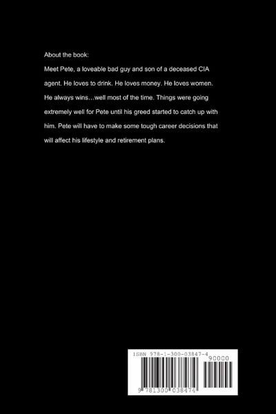 Meet Pete, a loveable bad guy and son of a deceased CIA agent that sells weapons. He loves to drink. He loves money. He loves women. He always wins...well, most of the time. Things were going extremely well for Pete until greed started to catch up with him. Pete will have to make a tough career decision that will affect his retirement plans.