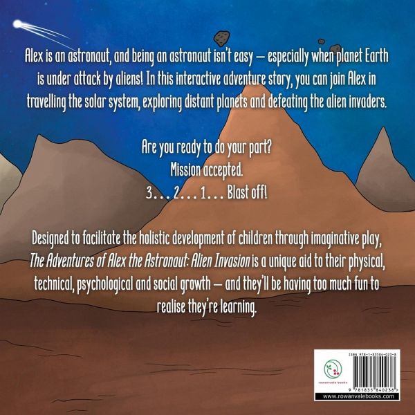 Alex is an astronaut, and being an astronaut isn't easy - especially when planet Earth is under attack by aliens! In this interactive adventure story, you can join Alex in travelling the solar system, exploring distant planets and defeating the alien invaders. Are you ready to do your part? Mission accepted. 3... 2... 1... Blast off! Designed to facilitate the holistic development of children through imaginative play, The Adventures of Alex the Astronaut: Alien Invasion is a unique aid to their physical, technical, psychological and social growth - and they'll be having too much fun to realise they're learning.