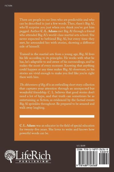 There are people in our lives who are predictable and who can be described in just a few words. Then, there's Big Al, who'll surprise you just when you think you've got him pegged. Author C. L. Adams met Big Al through a friend who attended Big Al's world-class martial arts school. She never expected to befriend Big Al, but every time they met, he astounded her with stories, showing a different side of himself. Trained in the martial arts from a young age, Big Al lives his life according to its principles. He works with what he has, he's adaptable to and aware of his surroundings, and he makes the most of every moment. Knowing that anything could happen at any time makes Big Al observant, so his stories are vivid enough to make you feel like you're right there with him. The Adventures of Big Al is an enthralling short story collection that captures your attention through an unexpected but wonderful friendship. C. L. believes that good stories don't need a lot of hype, and that truth can sometimes be as entertaining as fiction, as evidenced by the factual events Big Al sprinkles throughout. Be prepared to be amazed and walk away laughing.