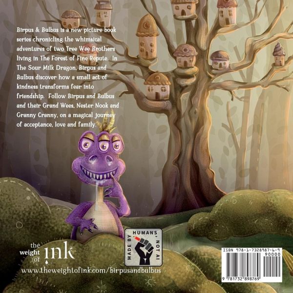 Birpus & Bulbus is a new picture book series chronicling the whimsical adventures of two Tree Wee Brothers living in The Forest of Fine Repute. In The Sour Milk Dragon, Birpus and Bulbus discover how a small act of kindness transforms fear into friendship. Follow Birpus and Bulbus and their Grand Wees, Nester Nook and Granny Cranny, on a magical journey of acceptance, love and family.