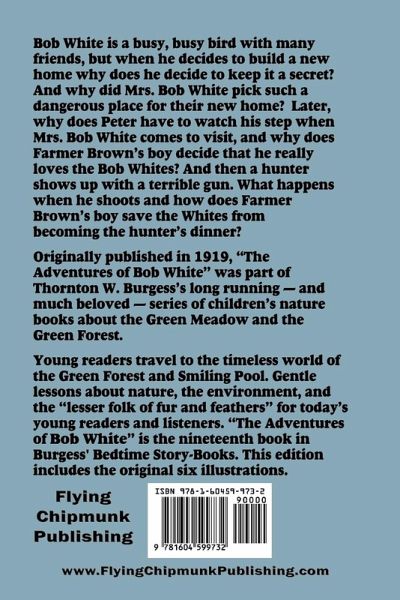 Bob White is a busy, busy bird with many friends, but when he decides to build a new home why does he decide to keep it a secret? And why did Mrs. Bob White pick such a dangerous place for their new home? Later, why does Peter have to watch his step whe