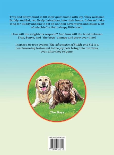 Troy and Sonya want to fill their quiet home with joy. They welcome Buddy and Sal, two lively Labradors, into their home. It doesn't take long for Buddy and Sal to set off on their adventures and cause a bit of mischief in their sleepy little town. How will the neighbors respond? And how will the bond between Troy, Sonya, and "the boys" change and grow over time? Inspired by true events, The Adventures of Buddy and Sal is a heartwarming testament to the joy pets bring into our lives, even after they're gone.