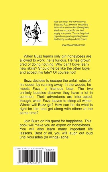 Learn important life lessons about friendship, belonging, and being true to yourself through this charming beginning chapter book. This funny, engaging story and beautiful drawings are sure to delight kids of all ages. A male honeybee, Buzz, becomes frustrated when he learns that the rules of his hive prohibit boys from working. He runs away from home forms an unlikely friendship with a bee's worst enemy, a bear. Fuzz is a funny character who has also run away. The two are close but must work out their differences. When the bear goes into hibernation, Buzz stays in another hive, where he is allowed to learn a trade. However, he grows homesick and realizes he must learn to solve his problems instead of avoiding them. Facts about honeybees, which are vital for our food supply, are woven throughout the story. Also, there are follow-up discussion questions, information on honeybees, ways people can keep their populations growing, and other resources kids can access to learn more.