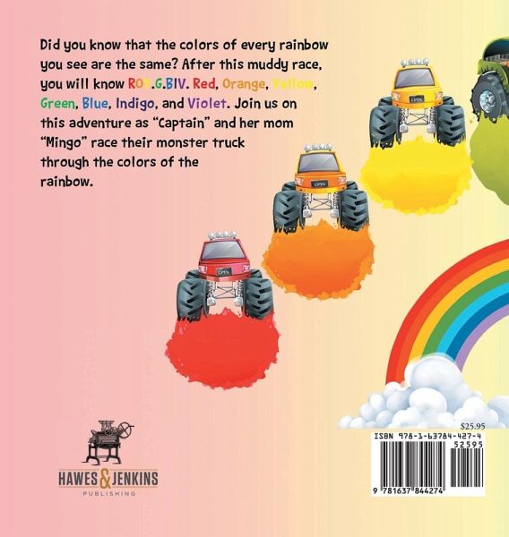 Did you know that the colors of every rainbow you see are the same? After this muddy race, you will know ROY-G-BIV--Red, Orange, Yellow, Green, Blue, Indigo, and Violet. Join us on this adventure as "Captain" and her mom "Mingo" race their monster truck through the colors of the rainbow.