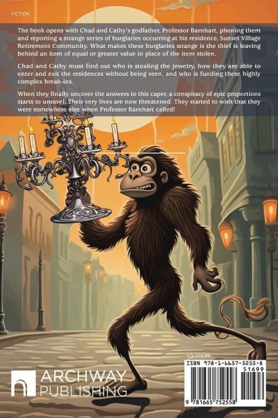 The book opens with Chad and Cathy's godfather, Professor Barnhart, phoning them and reporting a strange series of burglaries occurring at his residence, Sunset Village Retirement Community. What makes these burglaries strange is the thief is leaving behind an item of equal or greater value in place of the item stolen. Chad and Cathy must find out who is stealing the jewelry, how they are able to enter and exit the residences without being seen, and who is funding these highly complex break-ins. When they finally uncover the answers to this caper, a conspiracy of epic proportions starts to unravel. Their very lives are now threatened. They started to wish that they were somewhere else when Professor Barnhart called!