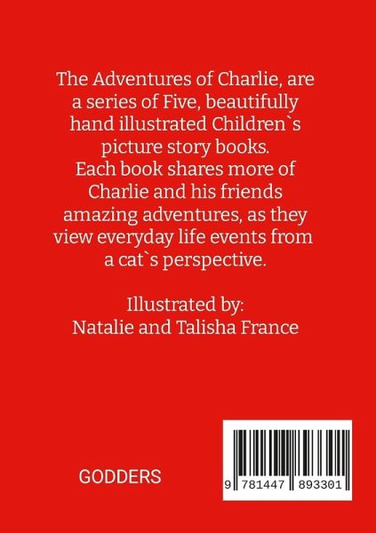 The Adventures of Charlie, are a series of Five, beautifully hand illustrated children`s picture story books. Based entirely upon a very real, and rather naughty cat and his adventures with friends, these charming stories are both colorful and funny, with the reader wanting to read more, and they encourage children to improve their reading abilities. Each book shares more of Charlies antics, as he views everyday life events, from a cat`s perspective, making the stories educational as well as fun.