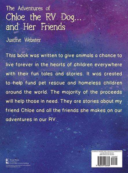 This book was written to give animals a chance to live forever in the hearts of children everywhere with their fun tales and stories. It was created to help fund pet rescue and homeless children around the world. The majority of the proceeds will help those in need. They are stories about my friend Chloe and all the friends she makes on our adventures in our R.V.