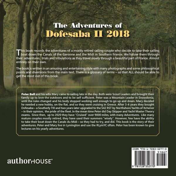 This book records the adventures of a mostly retired sailing couple who decide to take their sailing boat down the Canals of the Garonne and the Midi in Southern France. We follow them through their adventures, trials and tribulations as they travel slowly through a beautiful part of France. Almost entirely on their own. The book is written in an amusing and entertaining style with many photographs and some philosophical points and diversions from the main text. There is a glossary of terms - so that ALL should be able to get the most out of this book.