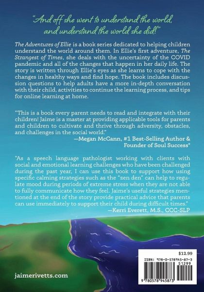 "And off she went to understand the world, and understand the world she did!" The Adventures of Ellie is a book series dedicated to helping children understand the world around them. In Ellie's first adventure, The Strangest of Times, she deals with the uncertainty of the COVID pandemic and all of the changes that happen in her daily life. The story is written through Ellie's eyes as she learns to cope with the changes in healthy ways and find hope. The book includes discussion questions to help adults have a more in-depth conversation with their child, activities to continue the learning process, and tips for online learning at home.