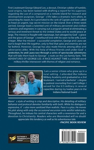First Lieutenant George Edward Lee, a devout, Christian soldier of humble, rural origins, has been tasked with drafting a report for his superiors regarding the use of a compound on a remote island for research and development purposes. George's life takes a dramatic turn when, in presenting his report, he is promoted to the rank of Captain and later called to head an urgent, top-secret mission on the island. Over a three-week period, George leads a talented unit of military personnel and civilian scientists and engineers in carrying out a program aimed at eliminating a serious and imminent threat to the United States and to world peace at large. The mission is fraught with espionage, but salvaged by God's grace and the grace of George's newfound love with his soon-to-be wife, Laura Krieger. After the mission's successful completion, George and Laura set out to begin their life together, only to find that spies and enemies are not far behind. However, George has also made friends among allies and adversaries alike. With the help of these friends and under God's protection, he and Laura race through a series of spectacular adventures that will take them back to George's roots on the Lee family farm. THE ADVENTURES OF GEORGE LEE: A RACE AGAINST TIME is a 64,000-word military thriller interwoven with themes of religion and romance.
