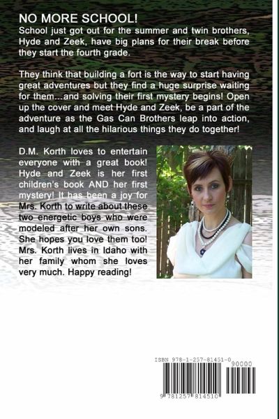 No more school! School just got out for the summer and twin brothers, Hyde and Zeek, have big plans for their break before they start the fourth grade. They think that building a fort is the way to start having great adventures but they find a huge surprise waiting for them...and solving their first mystery begins! Open up the cover and meet Hyde and Zeek, be a part of the adventure as the Gas Can Brothers leap into action, and laugh at all the hilarious things they do together!