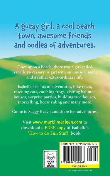 A gutsy girl, a cool beach town, awesome friends and oodles of adventures. Once upon a beach, there was a girl called Isabelle Necessary, who had an unusual name and a rather extra-ordinary and adventurous life. Join Isabelle and her friends Tammy, Nin and David, along with Draino the cat and Champ the wonder dog as they go on awesome adventures - bike racing, rescuing cats, escaping the lighthouse trap, teaching smart dogs new tricks, turning frogs into movie-stars, visiting a haunted house, giving a surprising surprise party, building a tree-house, going snorkelling, try not to full off horse riding, being a shop-keeper for a day and even solving the mystery of Floyd the singing parrot. Saggy Beach is cool places to have adventures. Isabelle love's staying at her Great Aunt Emma's bungalow at the Saggy Beach Retirement Village, where, at night, the waves sound like a mermaid lullaby and the light from the light-house throws sparkles across the rippling water. Isabelle's Great-Aunt Emma and the quirky oldies, Uncle Knock-knock, Mr Bigg, Saggy Bill, Madam Monique and Half-way Percy, help Isabelle and her friends have amazing adventures, and there's only one proper rule … be home before the street lights come on. Come to Saggy Beach for fun and adventure. A gutsy girl, a cool beach town, awesome friends and oodles of adventures. Once upon a beach, there was a girl called Isabelle Necessary, who had an unusual name and a rather extra-ordinary and adventurous life. Join Isabelle and her friends Tammy, Nin and David, along with Draino the cat and Champ the wonder dog as they go on awesome adventures - bike racing, rescuing cats, escaping the lighthouse trap, teaching smart dogs new tricks, turning frogs into movie-stars, visiting a haunted house, giving a surprising surprise party, building a tree-house, going snorkeling, try not to full off horse riding, being a shop-keeper for a day and even solving the mystery of Floyd the singing parrot. Saggy Beach is cool places to have adventures. Isabelle love's staying at her Great Aunt Emma's bungalow at the Saggy Beach Retirement Village, where, at night, the waves sound like a mermaid lullaby and the light from the light-house throws sparkles across the rippling water. Isabelle's Great-Aunt Emma and the quirky oldies, Uncle Knock-knock, Mr Bigg, Saggy Bill, Madam Monique and Half-way Percy, help Isabelle and her friends have amazing adventures, and there's only one proper rule … be home before the street lights come on. Come to Saggy Beach for fun and adventure.