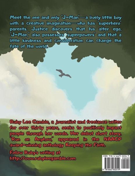 Meet the one and only "J-Man," a.k.a. Justice. A lively little boy with a creative imagination lives in Cleveland, Ohio, where the lake is "eerie," and the river is "crooked." Blessed with "superhero" parents, his dad is a scientist fighting water pollution, and his mom is a doctor who battles germs that make people sick. Justice discovers his alter ego J-Man also possesses "superpowers" and that a little kindness and consideration can change the fate of the world. It is a heartwarming story that emphasizes that children do not need to look further than their families to find heroes and role models. The story features an African American boy, highlighting the importance of values such as kindness and friendship.