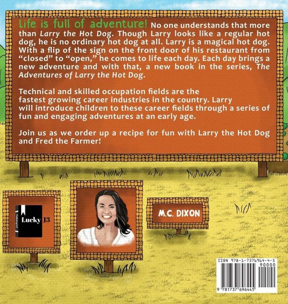 No one understands that more than Larry the Hot Dog. Though Larry looks like a regular hot dog, he is no ordinary hot dog at all. Larry is a magical hot dog. With a flip of the sign on the front door of his restaurant from "closed" to "open," he comes to life each day. Each day brings a new adventure and with that, a new book in the series, "The Adventures of Larry the Hot Dog!" Technical and skilled occupation fields are the fastest growing career industries in the country. Larry will introduce children to these career fields through a series of fun and engaging adventures at an early age. Join us as we order up a recipe for fun with Larry the Hot Dog and Fred the Farmer!