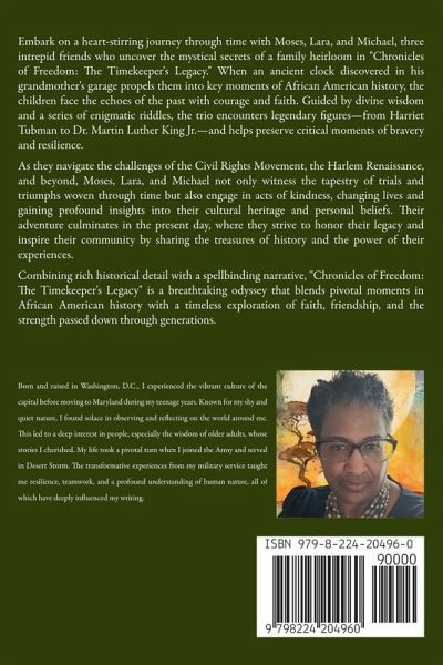 Embark on a heart-stirring journey through time with Moses, Lara, and Michael, three intrepid friends who uncover the mystical secrets of a family heirloom in "Chronicles of Freedom: The Timekeeper's Legacy." When an ancient clock discovered in his grandmother's garage propels them into key moments of African American history, the children face the echoes of the past with courage and faith. Guided by divine wisdom and a series of enigmatic riddles, the trio encounters legendary figures-from Harriet Tubman to Dr. Martin Luther King Jr.-and helps preserve critical moments of bravery and resilience. As they navigate the challenges of the Civil Rights Movement, the Harlem Renaissance, and beyond, Moses, Lara, and Michael not only witness the tapestry of trials and triumphs woven through time but also engage in acts of kindness, changing lives and gaining profound insights into their cultural heritage and personal beliefs. Their adventure culminates in the present day, where they strive to honor their legacy and inspire their community by sharing the treasures of history and the power of their experiences. Combining rich historical detail with a spellbinding narrative, "Chronicles of Freedom: The Timekeeper's Legacy" is a breathtaking odyssey that blends pivotal moments in African American history with a timeless exploration of faith, friendship, and the strength passed down through generations.