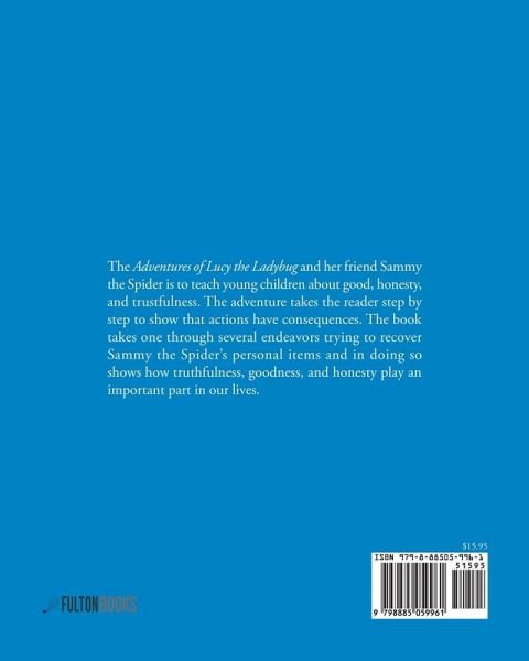 The Adventures of Lucy the Ladybug and her friend Sammy the Spider is to teach young children about good, honesty, and trustfulness. The adventure takes the reader step by step to show that actions have consequences. The book takes one through several endeavors trying to recover Sammy the Spider's personal items and in doing so shows how truthfulness, goodness, and honesty play an important part in our lives.