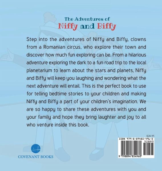 Step into the adventures of Niffy and Biffy, clowns from a Romanian circus, who explore their town and discover how much fun exploring can be. From a hilarious adventure exploring the dark to a fun road trip to the local planetarium to learn about the stars and planets, Niffy and Biffy will keep you laughing and wondering what the next adventure will entail. This is the perfect book to use for telling bedtime stories to your children and making Niffy and Biffy a part of your children's imagination. We are so happy to share these adventures with you and your family and hope they bring laughter and joy to all who venture inside this book.