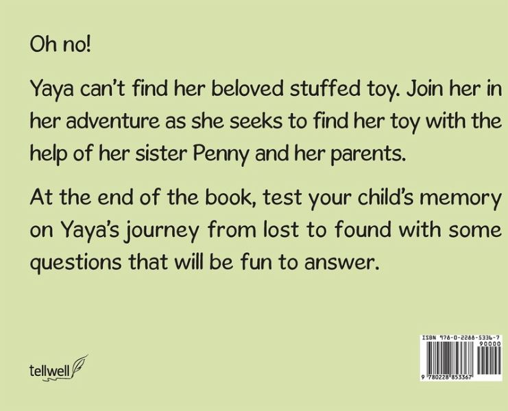 Oh no! Yaya can't find her beloved stuffed toy. Join her in her adventure as she seeks to find her toy with the help of her sister Penny and her parents. At the end of the book, test your child's memory on Yaya's journey from lost to found with some questions that will be fun to answer.