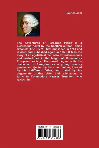 The Adventures of Peregrine Pickle is a picaresque novel by the Scottish author Tobias Smollett (1721-1771), first published in 1751 and revised and published again in 1758. It tells the story of an egotistical man who experiences luck and misfortunes in the height of 18th-century European society. The novel begins with the character of Peregrine as a young country gentleman rejected by his cruel mother, ignored by his indifferent father, and hated by his degenerate brother. After their alienation, he turns to Commodore Hawser Trunnion, who raises him.