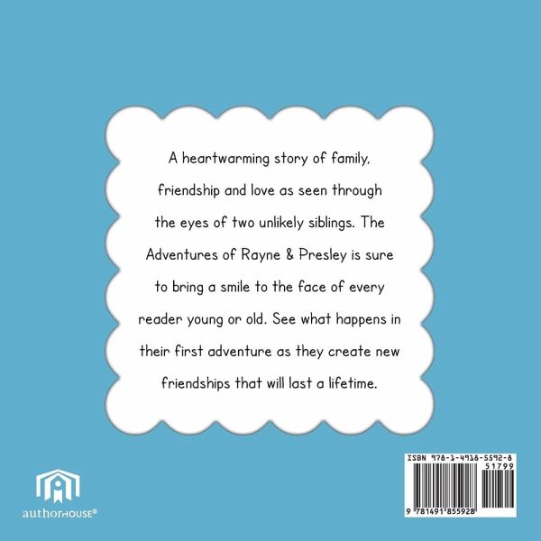 A heartwarming story of family, friendship and love as seen through the eyes of two unlikely siblings. The Adventures of Rayne & Presley is sure to bring a smile to the face of every reader young or old. See what happens in their first adventure as they create new friendships that will last a lifetime.