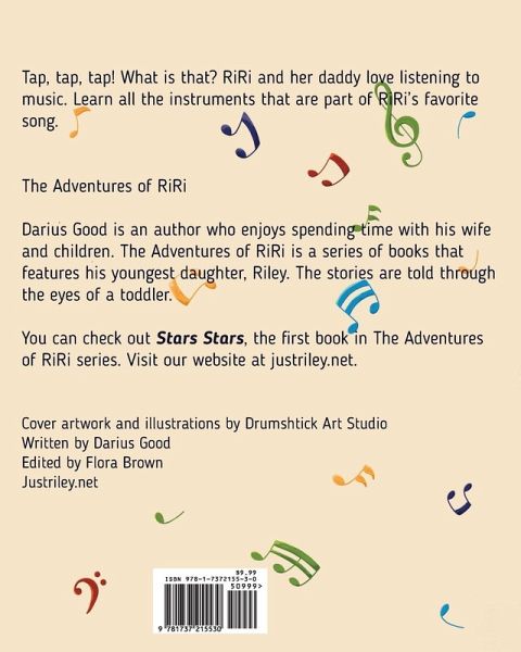 Tap, tap, tap! What is that? RiRi and her daddy love listening to music. Learn all the instruments that are part of RiRi's favorite song. Tap, Tap, Tap is the second book in the Adventure's of RiRi series. Be sure to check out Riley's first adventure, Stars Stars, today!
