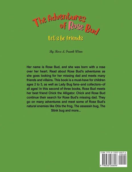 Her name is Rose Bud, and she was born with a rose over her heart. Read about Rose Bud's adventures as she goes looking for her missing dad and meets many friends and villains. This book is a must-have for children ages 2 to 5, as well as Lady Bug fans-and collectors-of all ages! In this second of three books, Rose Bud meets her best friend Chick the Alligator. Chick and Rose Bud continue their search for Rose Bud's missing dad. They go on many adventures and meet some of Rose Bud's natural enemies like Otis the frog, The assassin bug, The Stink bug and more...