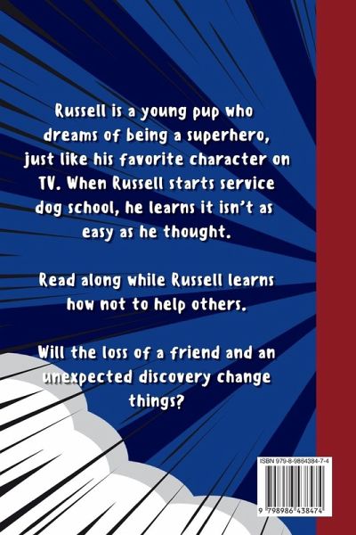 Book Description: Russell is a young pup who dreams of being a superhero, just like his favorite character on TV. When Russell starts service dog school, he learns it isn't as easy as he thought. Read along while Russell learns how not to help others. Will the loss of a friend and an unexpected discovery change things? Details: 6x9 Paperback 159 Pages New Cover for 2nd Edition 2nd Edition