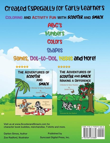 Over 100 fun easy-to-color, large pages with letters, numbers, colors, shapes and games to introduce children to dot-to-dot, mazes, spot the difference and more! Especially created for early learners that will have fun while learning important motor and concentration skills. Coloring pages to help with motor skills Games that are fun, to help with articulation and focus A fun introduction to basic skills: ABCs, shapes, colors, numbers Activities to express creativity This book is a great introduction to preschool and early elementary, packed with lots of engaging fun! The perfect companion, it goes well with The Adventures of Scooter and Smack: 5 Stories for Early Readers and The Adventures of Scooter and Smack Making a Difference: 3 Stories (also for ages 3-8). Each story ends with a life lesson.