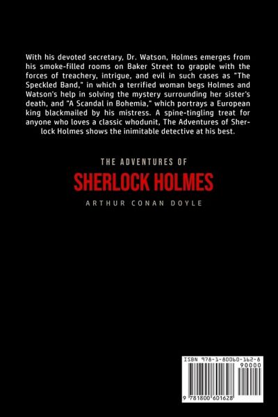 Do you want to read The Adventures of Sherlock Holmes? If so then keep reading... With his devoted secretary, Dr. Watson, Holmes emerges from his smoke-filled rooms on Baker Street to grapple with the forces of treachery, intrigue, and evil in such cases as "The Speckled Band," in which a terrified woman begs Holmes and Watson's help in solving the mystery surrounding her sister's death, and "A Scandal in Bohemia," which portrays a European king blackmailed by his mistress. A spine-tingling treat for anyone who loves a classic whodunit, The Adventures of Sherlock Holmes shows the inimitable detective at his best. What are you waiting for The Adventures of Sherlock Holmes is one click away, select the "Buy Now" button in the top right corner NOW!