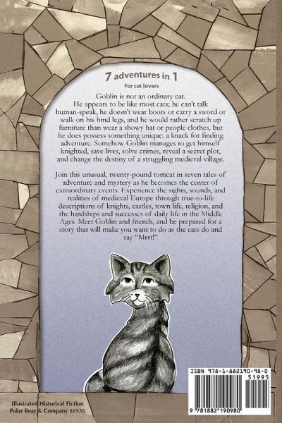 For all cat lovers. Goblin is not an ordinary cat. He appears to be like most cats; he can't talk human-speak, he doesn't wear boots or carry a sword or walk on his hind legs, and he would rather scratch up furniture than wear a showy hat or people clothes, but he does possess something unique: a knack for finding adventure. Somehow Goblin manages to get himself knighted, save lives, solve crimes, reveal a secret plot, and change the destiny of a struggling medieval village. Join this unusual, twenty-pound tomcat in seven tales of adventure and mystery as he becomes the center of extraordinary events. Experience the sights, sounds, and realities of Medieval Europe through true-to-life descriptions of knights, castles, town life, religion, and the hardships and successes of daily life in the Middle Ages. Meet Goblin and friends, and be prepared for a story that will make you want to do as the cats do and say "Mrrt!" (19 illustrations, by hand.)
