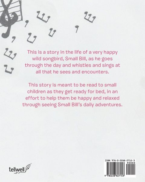 This is a story in the life of a very happy wild songbird, Small Bill, as he goes through the day and whistles and sings at all that he sees and encounters. This story is meant to be read to small children as they get ready for bed, in an effort to help them be happy and relaxed through seeing Small Bill's daily adventures.