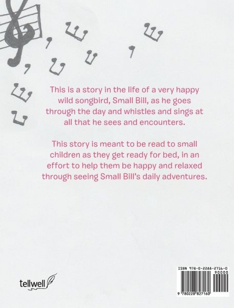 This is a story in the life of a very happy wild songbird, Small Bill, as he goes through the day and whistles and sings at all that he sees and encounters. This story is meant to be read to small children as they get ready for bed, in an effort to help them be happy and relaxed through seeing Small Bill's daily adventures.