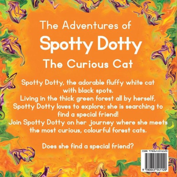 Spotty Dotty loves to explore; she is searching to find a special friend! Join Spotty Dotty on her journey where she meet the most curious, colourful forest cats. Does she find a special friend?